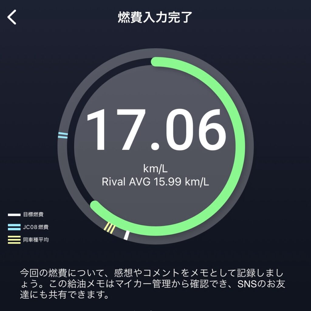 前回が高速オンリーに対して今回は一般道(通勤)オンリーです。通勤で17km/L台は良好な燃費。スタッドレスに変えたのが影響しているかもしれません、スタッドレスホイールセットの方が4本で数kg軽く発進時に力強く加速します。エンジンの負担も軽減し、10℃前後の気温はエンジン始動時の回転数上昇時間も短いので、この時期の燃費は向上する傾向にあります。