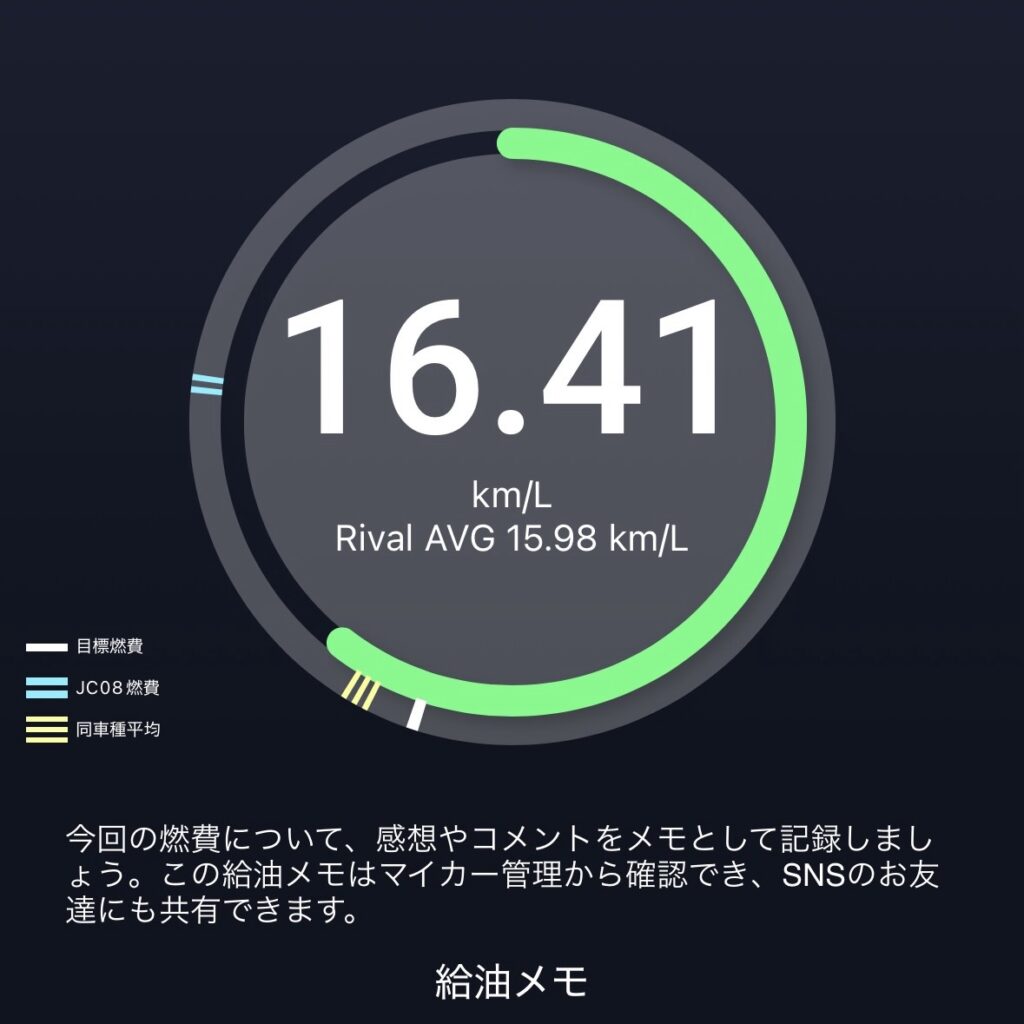 前回よりも走行時の気温が低くなりエンジン始動後の回転数上昇時間が長くなったので燃費は悪くなると予想していましたが、あまりにもいい燃費が出て驚いています。例年のこの時期は16.5km/L前後が多いので約6%燃費がよくなりました。