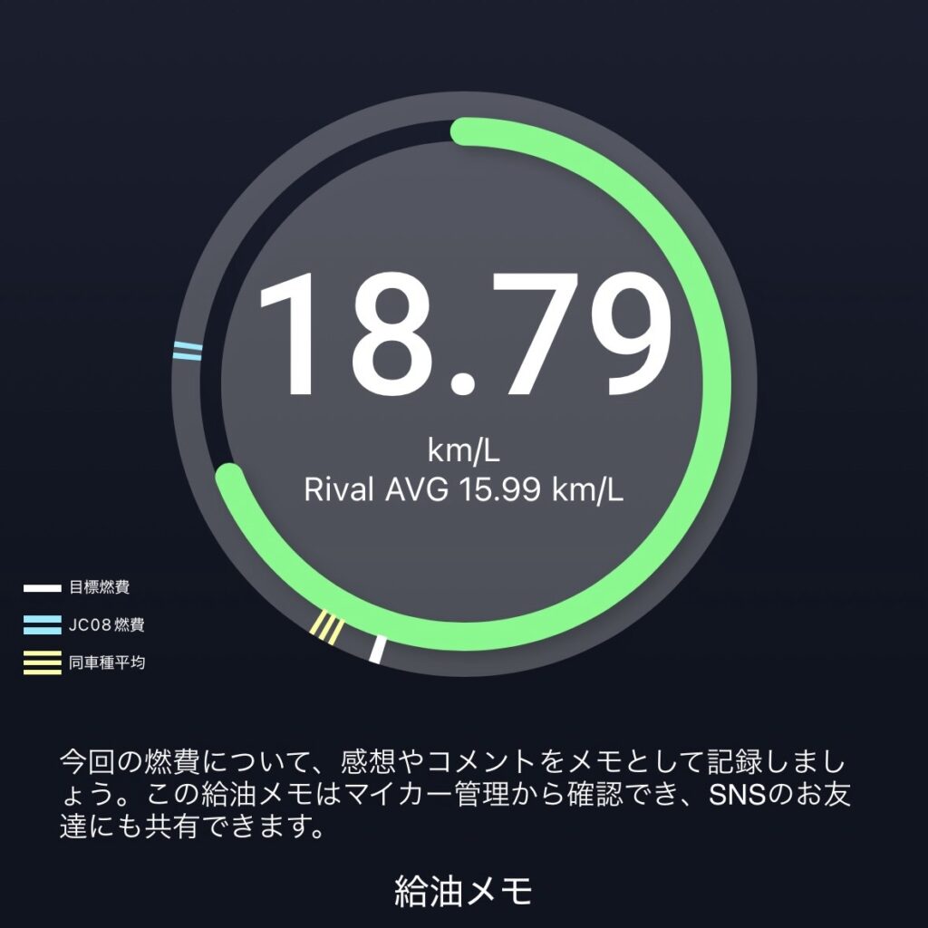 高速を走ったので燃費は良好。20kmに1回は追越加速をしたので19km/Lを下回りました。